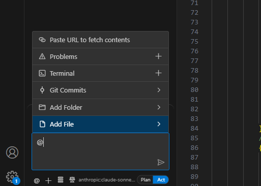 whenever in cline you want to act on a specific file just hit the @ char and load the file