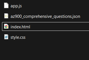 style has the graphical layout, index is the starting point, app has all the logic and az90… file has all the questions
